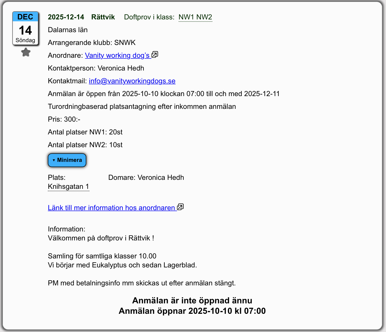 Regelverk finns på länken här under. Du som tävlande måste känna till vilka regeler som gäller.