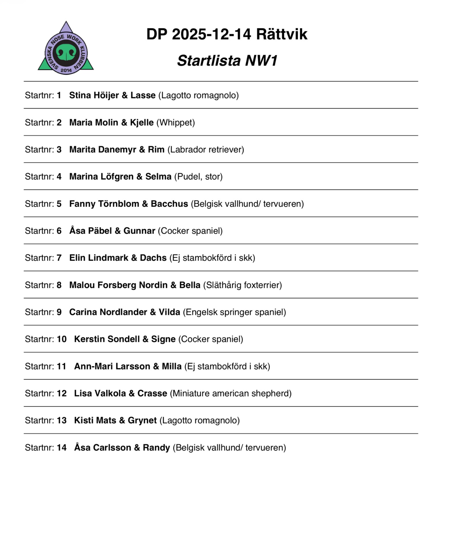 Startlistan kan justeras pga sjukdom mm så kolla även här kvällen innan.